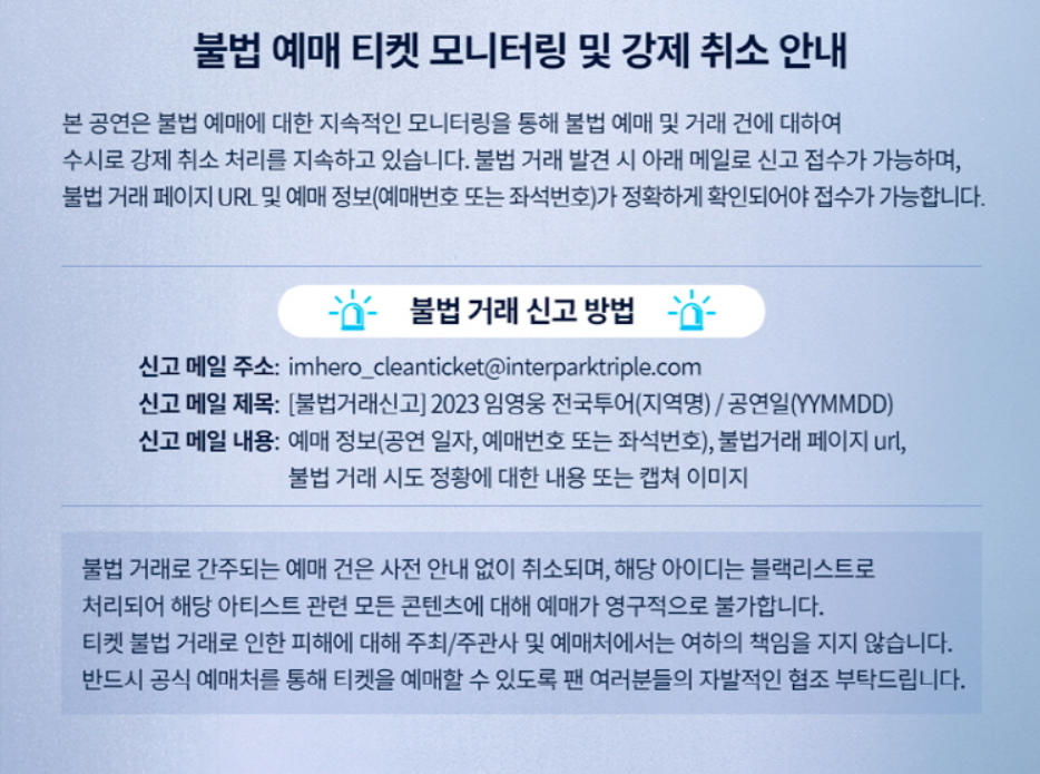 [불법 예매 티켓 모니터링 및 강제 취소 안내]