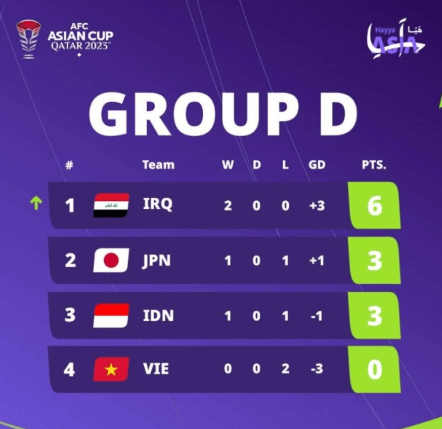 D조 : 일본, 인도네시아, 이라크, 베트남