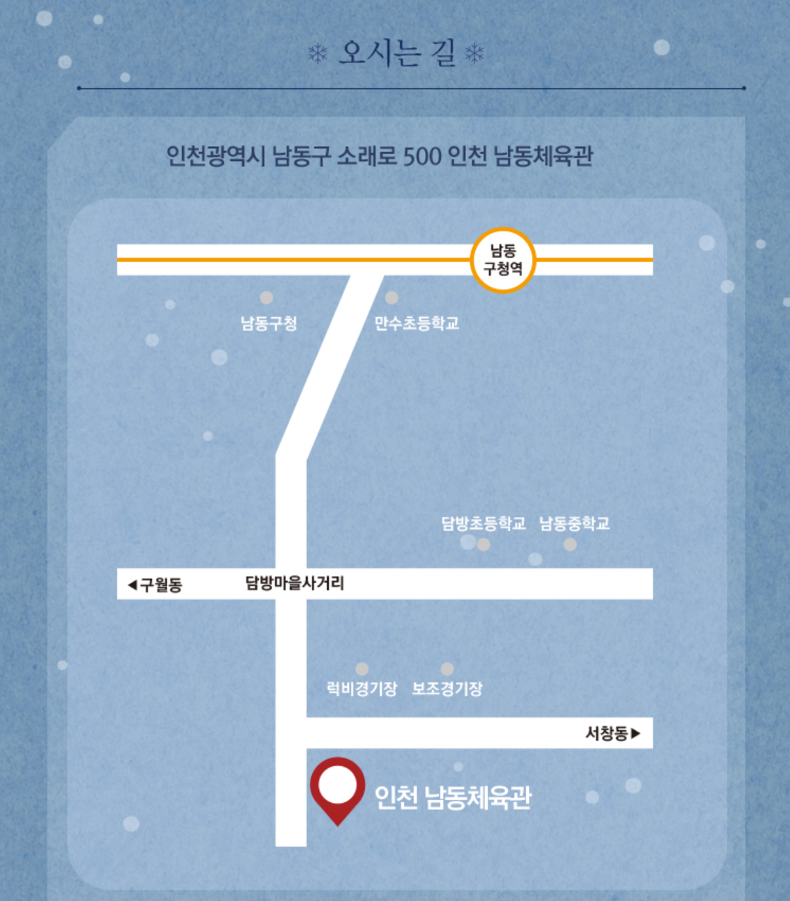* 지하철 : 송내역 : 남광장에서 시내버스 (909,16-1, 103-1) 환승 남동체육관 또는 럭비기장 정류소에서 하차 / 인천 지하철 1호선 : 예술회관역에서 시내버스 (21,754) 환승 / 럭비경기장 정류소에서 하차